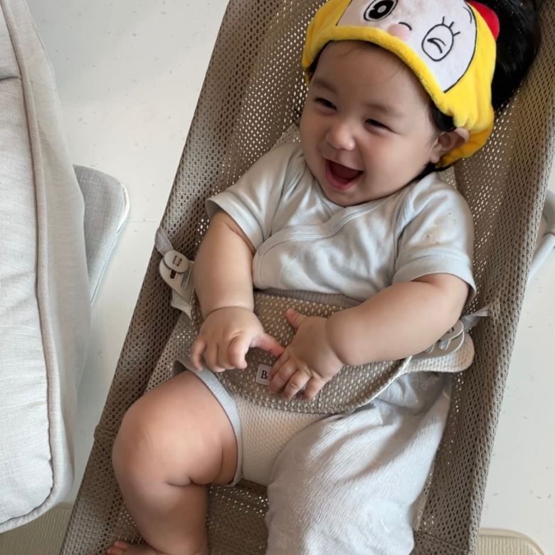 사진 속에는 각각 의자와 바운서에 앉아 마스크팩을 하고 있는 심형탁과 하루 군의 모습이 담겨 있다. 유명한 도라에몽 덕후다운 도라에몽 마스크 팩이 웃음을 자아냈다.