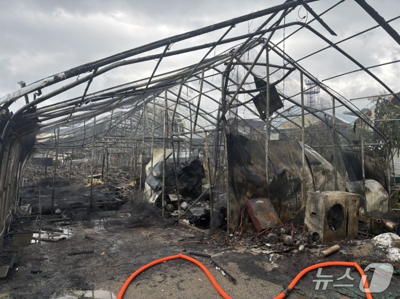 서울 서초구 내곡동 화훼단지에서 발생한 화재로 비닐하우스가 불에 탄 모습.(서초소방서 제공) |