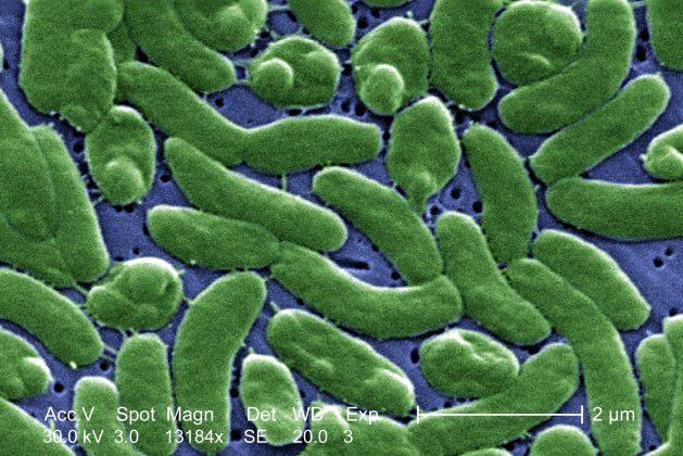 전자현미경으로 관찰한 비브리오 패혈증균(Vibrio vulnificus)에 색을 입힌 사진. 미 질병통제예방센터(CDC) 홈페이지 캡처 |