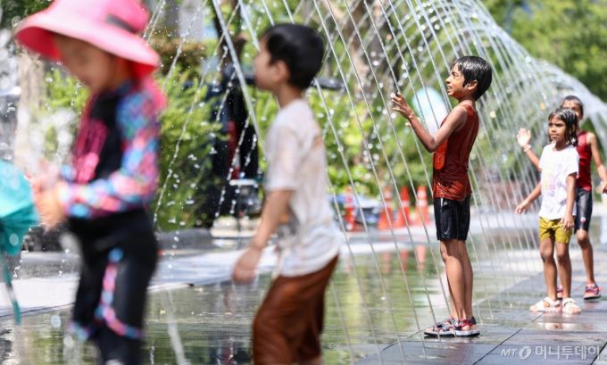 (서울=뉴스1) 김도우 기자 = 절기상 처서를 하루 앞두고 폭염이 찾아온 22일 서울 종로구 광화문광장 바닥분수에서 어린이들이 물놀이를 하며 더위를 식히고 있다. 2025.8.22/뉴스1 Copyright (C) 뉴스1. All rights reserved. 무단 전재 및 재배포, AI학습 이용 금지. /사진=(서울=뉴스1) 김도우 기자 |