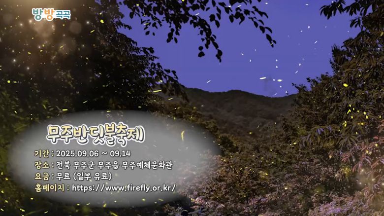 #방방곡곡 #무주반딧불축제 #괴산고추축제 #제주레저힐링축제 #김제국가유산야행 #축제
