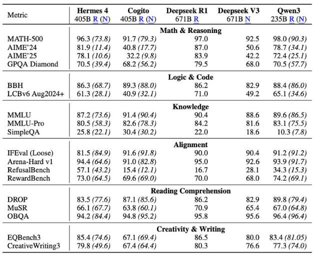 가드레일 없는 오픈 소스 모델로 인기를 얻은 누스 리서치가 강력한 성능과 독창적인 추론 방식을 앞세운 새로운 대형언어모델(LLM) '헤르메스 4(Hermes 4)'을 선보였다. 첨단 상용 모델에 맞먹는 수학·코딩·추론 능력을 구현하면서도, 이번에도 거부 응답을 최소화해 자유로운 활용성을 강조했다.