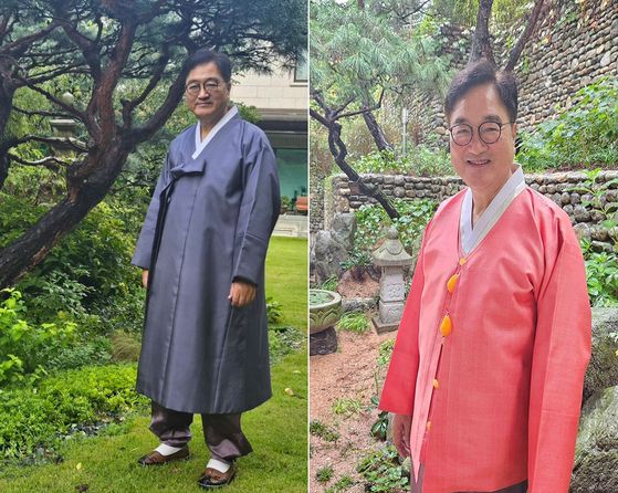 우원식 국회의장이 30일 “정기국회 개원식에서 국회의원 전원이 한복을 착용하자고 제안하자”며 한복을 입은 사진을 게재했다. 사진 우 의장 페이스북 캡처 |