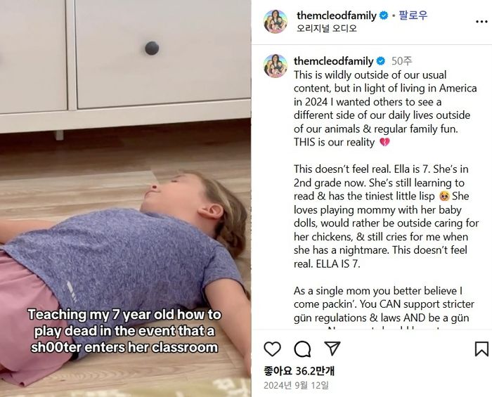 이카 매클라우드의 딸이 총기 사건에 대비해 훈련 중인 모습 [사진출처=SNS] |