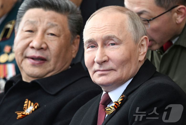 9일(현지시간) 블라디미르 푸틴 러시아 대통령과 시진핑 중국 국가주석이 모스크바 붉은광장에서 열린 2차 세계대전 승리를 기념하는 전승절 열병식에 참석하고 있다. 2025.05.09 ⓒ 로이터=뉴스1 ⓒ News1 김지완 기자 |
