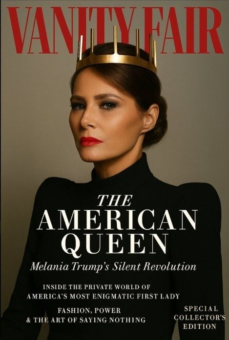 이미지를 보면 검은색 옷을 입은 멜라니아 여사가 왕관을 쓰고 있다. 배니티 페어라는 제호 아래에는 ‘미국 왕후(American Queen)’라는 헤드라인이 적혀 있다. 더불어 “멜라니아 트럼프의 조용한 혁명”, “미국의 가장 수수께끼 같은 퍼스트레이디의 사적인 세계의 내부”, “패션, 권력 그리고 아무런 말을 하지 않는 기술” 같은 소제목이 달려 있다.