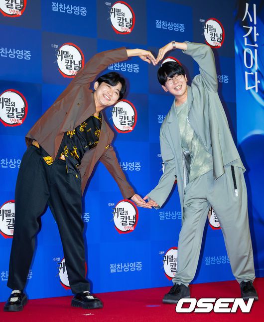 이날 '극장판 귀멸의 칼날: 무한성편'의 성우 하나에 나츠키(탄지로 역), 시모노 히로(젠이츠 역)와 국내 스타 셀럽들이 참석해 자리를 빛냈다.
