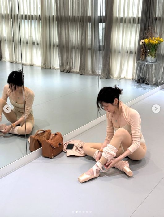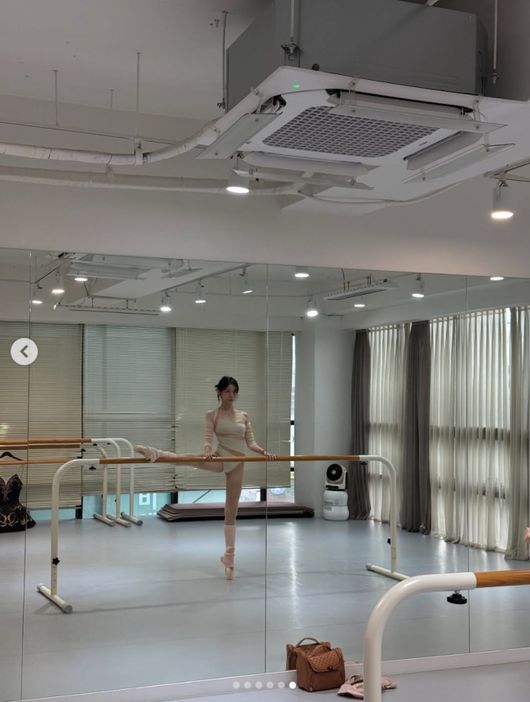 공개된 사진에는 발레복을 입고 토슈즈를 신고 있는 박지현의 모습이 담겨 있었다. 박지현은 전신거울이 설치된 발레 스튜디오에서 운동을 준비하는 듯 토슈즈를 착용하기 위해 바닥에 앉아 있었다. 꼼꼼하게 토슈즈를 신으면서 발레 준비에 나선 모습이다.