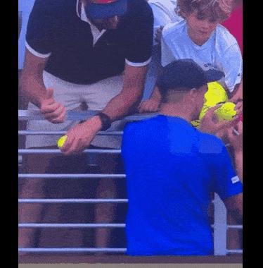[헤럴드경제=나은정 기자] 미국 US 오픈에서 유명 테니스 스타가 한 어린이 팬에게 건넨 선물을 성인 남성이 가로채는 장면이 생중계 화면에 잡혀 누리꾼의 공분을 사고 있다.