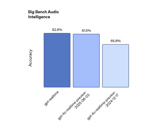 우선 '빅 벤치 오디오(Big Bench Audio)' 평가에서 정확도가 82.8%를 기록해, 이전 모델의 65.6%에 비해 큰 향상을 입증했다.