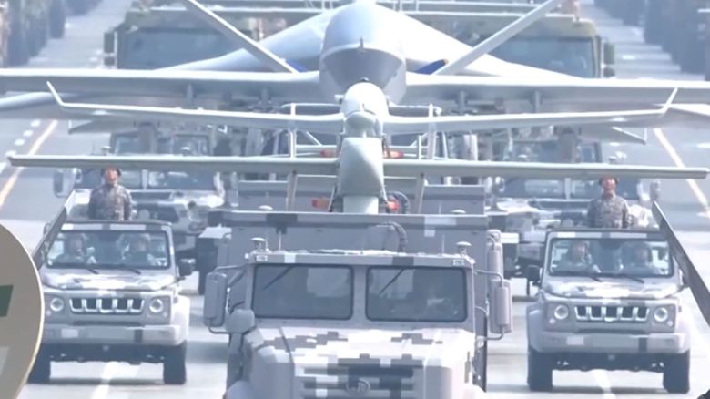 사거리 1만 5천km에 달하는 대륙간탄도미사일 둥펑 41과 J-20, J-35 등 최신형 전투기가 등장하고, 강화된 항모 전력을 보여주기 위해 신형 함재기와 무인 전투기 페이홍 97도 처음 선을 보입니다.