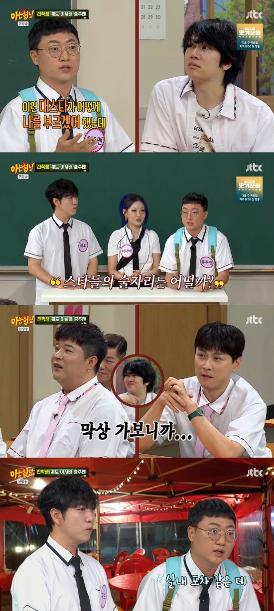 이어 "맛있는 안주가 나오지 않을까 했는데 찌개가 나오더라. 소주를 계속 먹는데, 심지어 멤버도 궤도 형, 박정석 형이더라. 너무 실망해서 그 다음부터 연락을 안 받았다"고 덧붙였다.