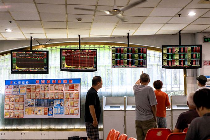 지난 8월 중순 중국 증권사 영업점에서 주가를 보는 중국 투자자/사진=중국 인터넷 |