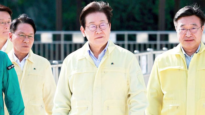 바닥을 드러낸 강원도 강릉시 오봉 저수지를 찾은 이재명 대통령.