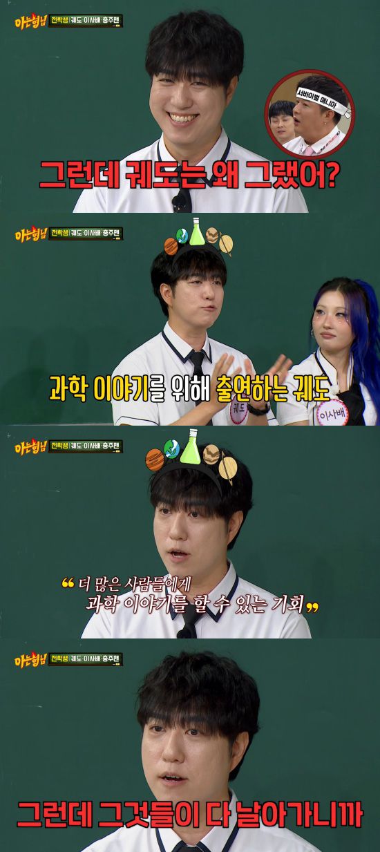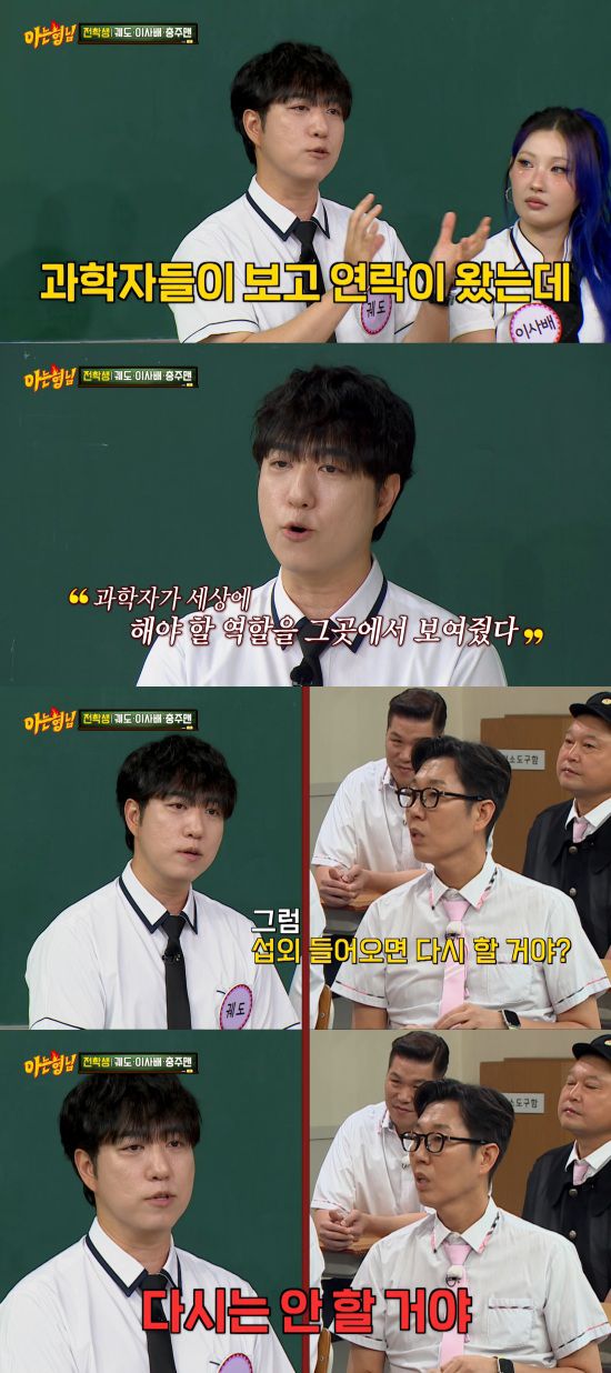 궤도는 "좋았던 건 과학자 분들이 정말 많이 보시고 연락을 주셨다"면서 "'네가 과학자가 세상에 해야 할 역할을 그곳에서 보여줬다', '과학자는 알 게 된 걸로 본인이 이득을 보면 안되고, 모두에게 나눠서 함께 생존하는 게 제일 종요하다'고 하시더라"고 소개했다.