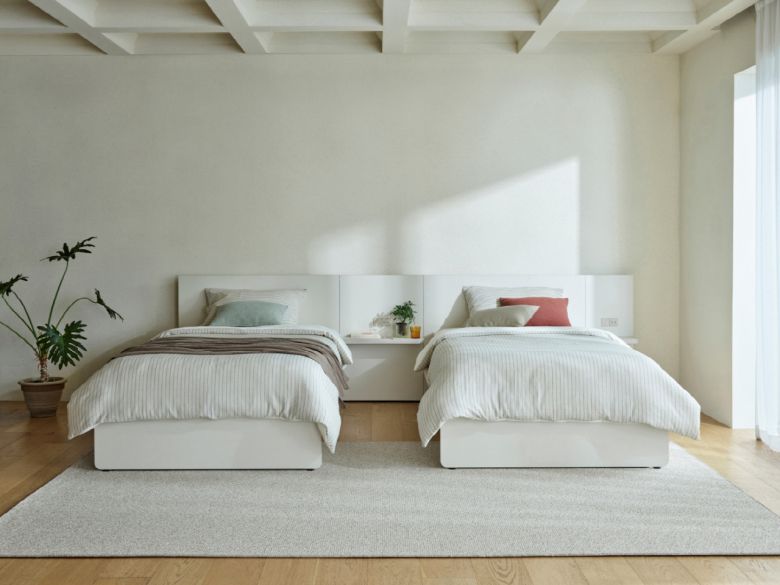31일 한샘에 따르면 모노는 모노톤 컬러에 헤드 높이를 낮춰 넓어 보이는 비례미가 특징이다. 침대 헤드 전체에 끊김 없이 길게 적용된 바 형태의 조명을 통해 아늑한 신혼 침실을 연출할 수 있다.