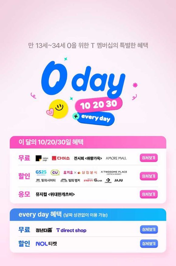 만 13~34세 고객을 위한 0 day도 준비됐다. 9월에는 뮤지컬 위대한 개츠비 100명 무료 초청, 디뮤지엄 취향가옥2 1만명 무료 입장권 제공, 전시 아니메쥬와 지브리전 입장권 25% 할인 등이 포함됐다.