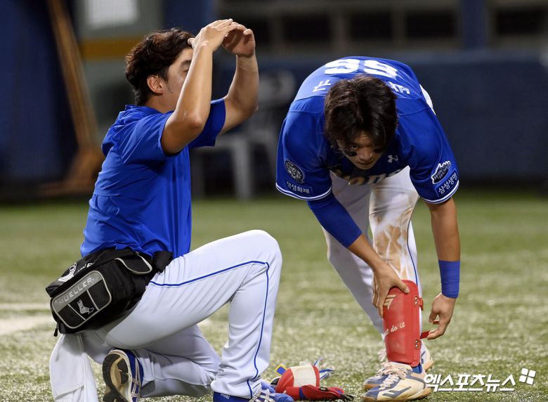 (엑스포츠뉴스 대전, 김유민 기자) 지난 30일 경기 도중 사구로 인해 교체된 삼성 라이온즈 박승규가 엄지 분쇄골절 소견을 받았다.