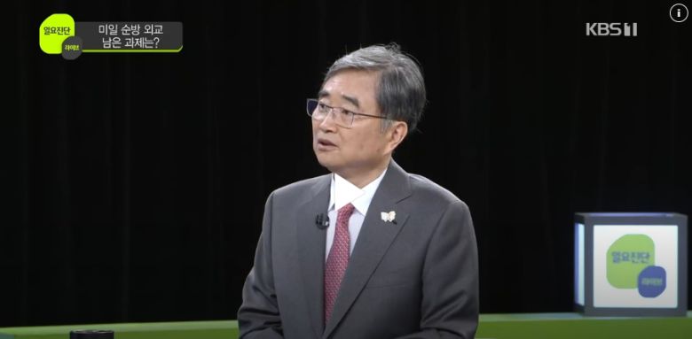 조현 외교부 장관이 31일 KBS <일요진단 라이브>에 출연해 발언하고 있다. KBS 홈페이지 갈무리 |