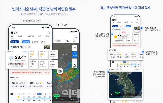 네이버 관계자는 “날씨는 일상에서 가장 자주 확인하는 정보 중 하나인 만큼, 단순 예보를 넘어 생활 밀착형 서비스로 고도화하고 있다”며 “재난·재해 상황에는 실시간 정보 제공으로 플랫폼의 사회적 책임을 다하고, 동시에 야구장 테마 예보처럼 유용한 기능들을 꾸준히 추가해 이용자 경험을 넓혀가고 있다”고 강조했다.