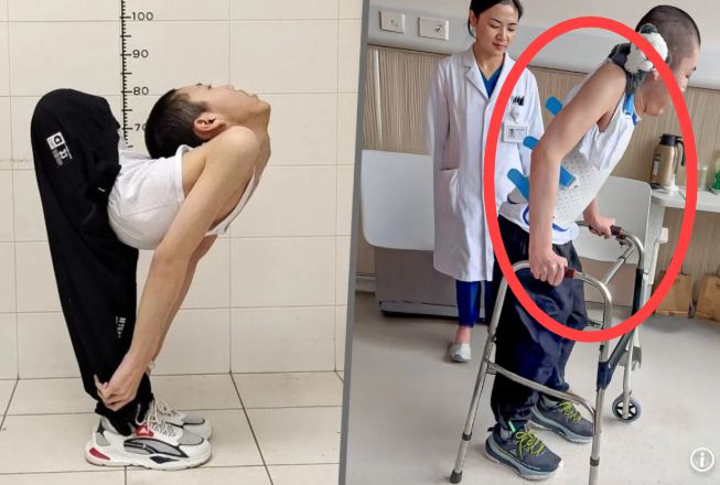 허리가 기이한 형태로 꺾여 ‘폴더 소년’으로 불렸던 중국 청년이 드디어 정면을 바라보고 서는 데 성공했다.