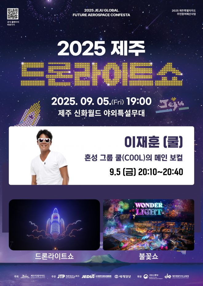 그룹 ‘쿨’의 이재훈이 축하 공연을 진행하고, 드론쇼 직후에는 신화월드 불꽃쇼가 이어져 도민과 관광객들에게 잊지 못할 감동을 선사할 예정이다. 행사 당일 관람객들의 교통 편의를 위해 도 대중교통과와 협업해 255번 버스 노선을 제주에서 신화월드 방면 오후 6시 전후, 행사 종료 후 신화월드에서 제주 방면 각각 2회 증회 운행한다.