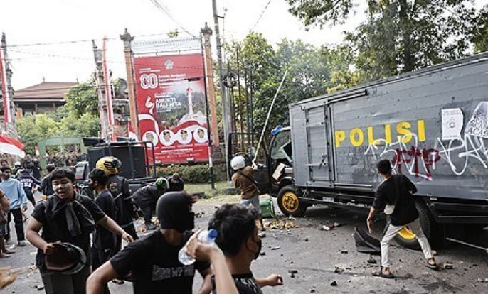 | 인도네시아 발리서 충돌한 경찰과 시위대 / 사진=EPA 연합뉴스 |