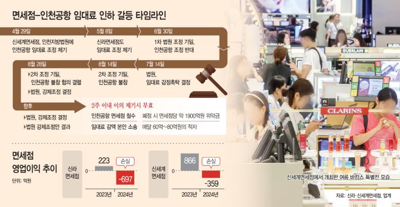 이러한 상황에서 면세점업계에서는 탈출구를 모색하고 있는 중이다. 면세점들은 코로나19 팬데믹 이후 지속된 재정 악화 상태를 개선하고자 적자 지속 상태인 인천공항 면세점의 임대료를 조정해 달라고 요구하고 있다. 하지만 인천공항의 완강한 거부에 협상도 결렬됐다. 이에 최후의 수단인 공항 철수 카드까지 거론되고 있다.