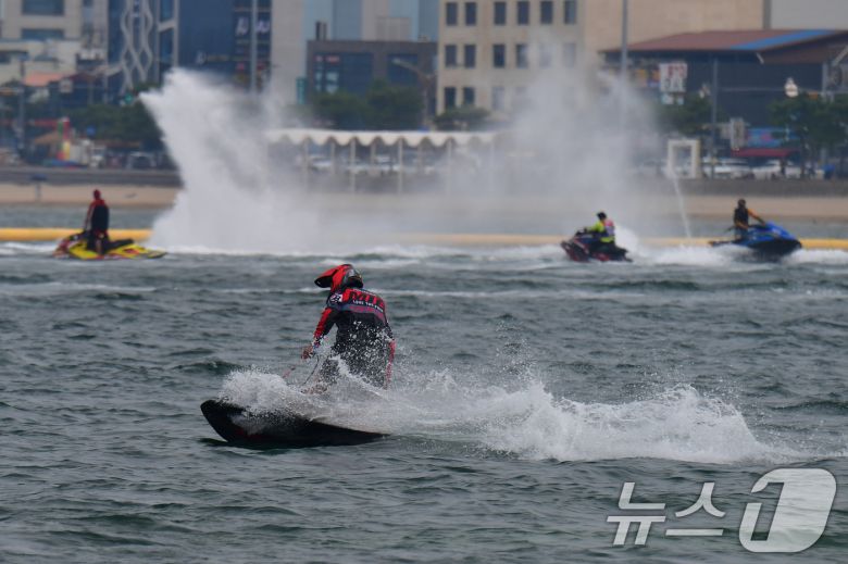 8월의 마지막 날인 31일 오후 경북 포항시 북구 영일대해수욕장에서 제트보드 회원들이 물살을 가르고 있다. 2025.8.31/뉴스1 ⓒ News1 최창호 기자 |