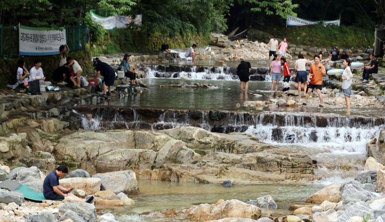 계곡을 찾은 시민들이 물놀이를 즐기고 있다. 연합뉴스 |