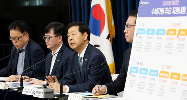 구윤철 부총리 겸 기획재정부 장관이 지난 28일 세종시 정부세종청사 중앙동에서 열린 2026년 예산안 및 2025-2029 국가재정운용계획을 발표하고 있다. 뉴스1 |