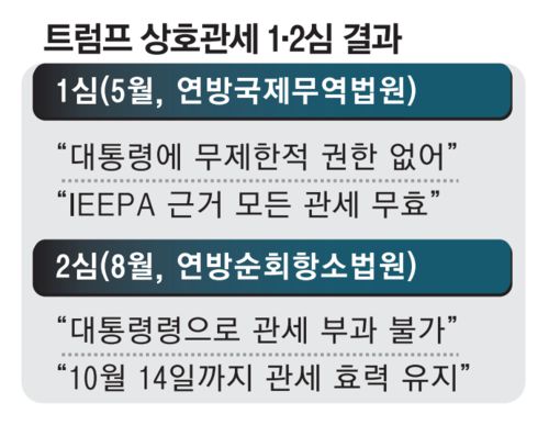 도널드 트럼프 미국 행정부가 세계 교역국에 부과한 상호관세가 1심에 이어 2심에서도 “대통령의 권한을 넘어섰다”며 위법 판결을 받았다. 트럼프 행정부는 보수 우위 구도인 대법원에서 판단을 뒤바꾸기 위해 총력 태세에 나섰다.