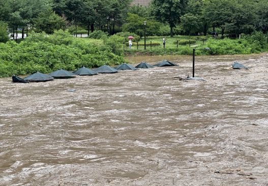 집중 호우로 경기 고양시 덕양구 창릉천 일대가 잠겨있는 모습(사진=뉴시스).
