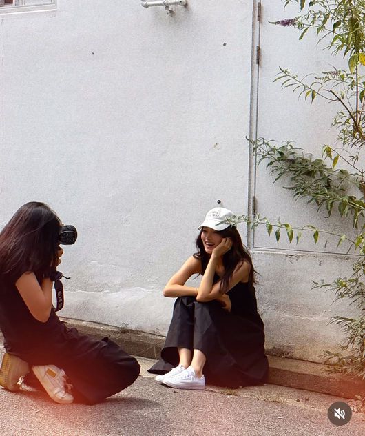 서하얀은 하얀 담벼락 아래에서 펑퍼짐한 원피스에 캡을 쓴 채 해맑은 미소를 짓고 있었다. 여느 세트장이 아닌 자연광 아래에서 여러 가지 포즈를 취하고 있는 서하얀은 마치 패션 화보를 찍는 것과 같았다.