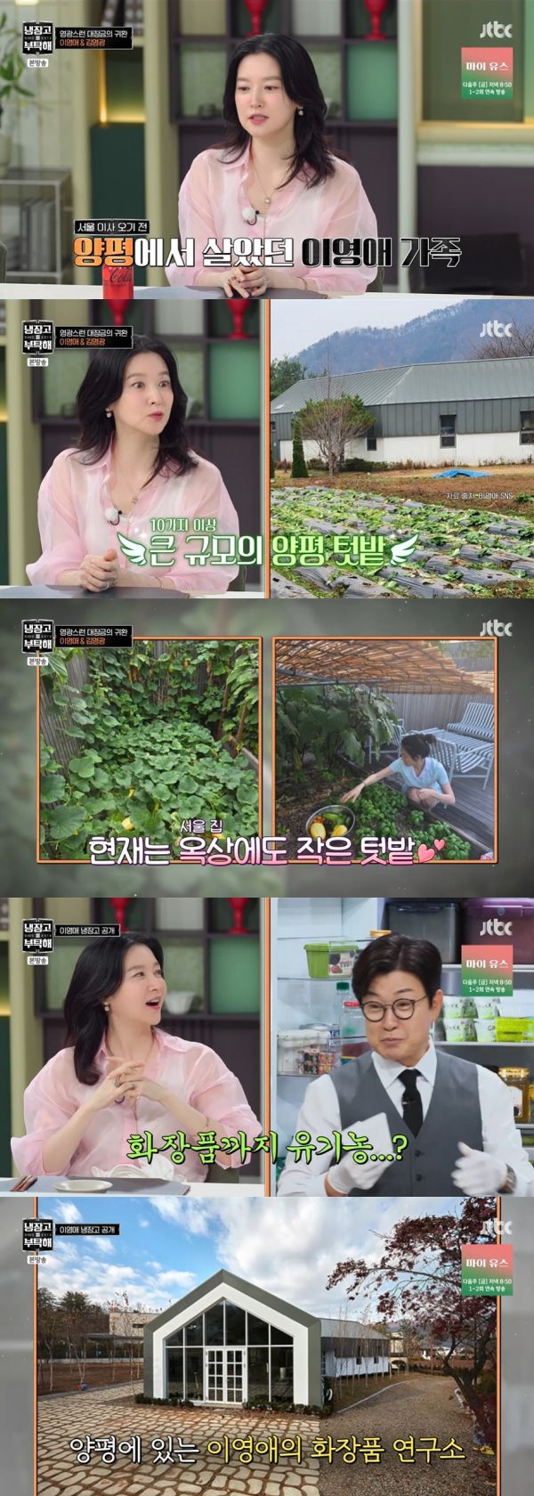 뿐만 아니라 화장품도 함께 있었는데, 이영애는 "제가 아이 낳고 화장품을 직접 만들었다. 양평에 화장품 연구소가 있다"고 밝혔다.