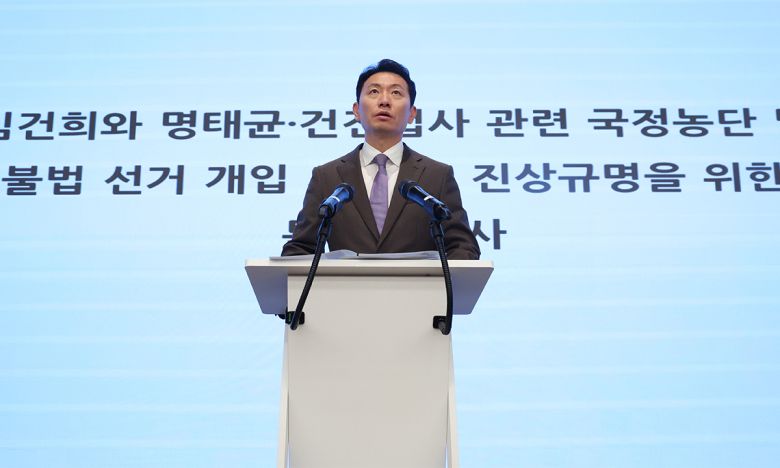 브리핑하는 김건희특검팀 윤석열 전 대통령의 부인 김건희씨의 각종 의혹을 수사하는 김건희 특별검사팀(특검 민중기) 박상진 특검보가 29일 서울 세종대로 특검 사무실에서 브리핑을 하고 있다. 특검은 이날 김씨를 자본시장법 위반, 정치자금법 위반, 특정범죄 가중처벌법상 알선수재 혐의로 구속기소했다. 뉴스1 |