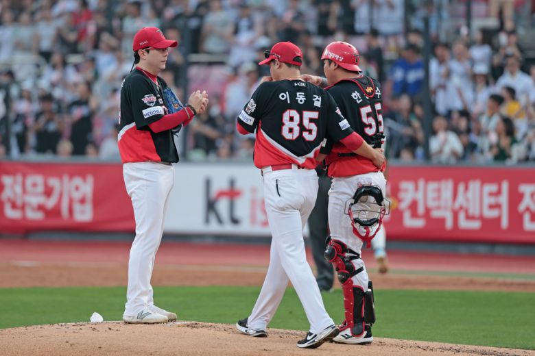 양현종이 4.1이닝 4실점, 오원석이 5이닝 3실점으로 물러난 이후엔 양팀 불펜의 분전 속에 소강 상태가 지속됐다. KT 이강철 감독은 오원석에 이어 6회 마운드에 선발자원인 헤이수스까지 올리며 총력전을 개시했다. 올라오자마자 볼넷과 안타로 무사 1,3루에 몰린 헤이수스는 김석환, 한준수, 김태군을 연속 삼진으로 잡아내며 팀의 4-3 리드를 지켜냈다.