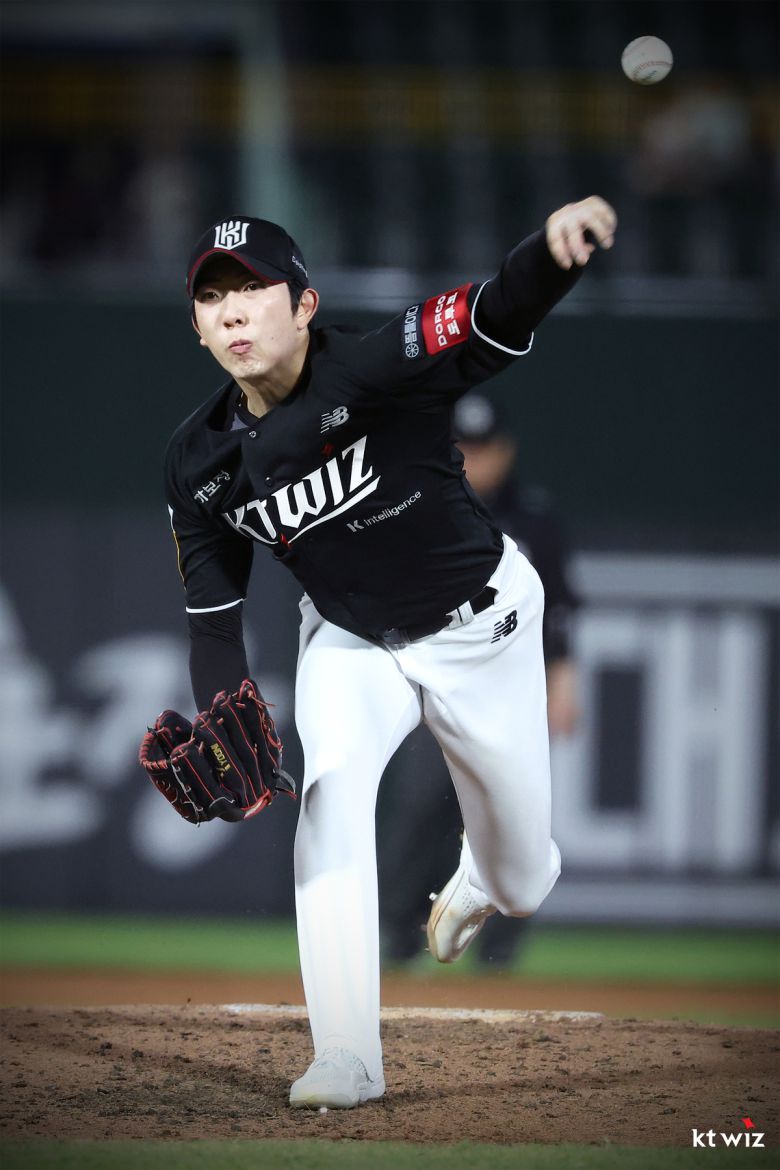 4-3으로 이어지던 경기에 균열이 난 건 8회. KIA는 최형우의 몸에 맞는 공에 이어 위즈덤 대신 대타로 나선 나성범의 좌익선상 2루타로 무사 2,3루 기회를 잡았다. 급해진 KT 벤치는 프라이머리 셋업맨 손동현을 올려 오선우를 삼진으로 솎아냈고, 1사 2,3루에서 마무리 박영현을 올렸다. ‘5아웃 세이브’를 맡겼지만, 박영현은 김석환에게 동점 희생플라이를 맞고 블론 세이브를 기록했다.
