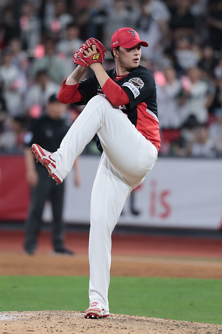 이범호 감독은 정해영에 대해 1경기 정도만 마무리 상황이 아닐 때 내보내고 곧바로 마무리로 복귀시킨다는 방침을 천명한 바 있다. 그 방침 그대로 정해영은 이날 9회말 마운드에 팀 승리를 지키기 위해 나섰다.