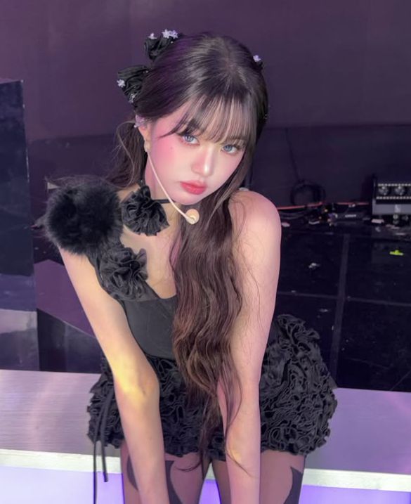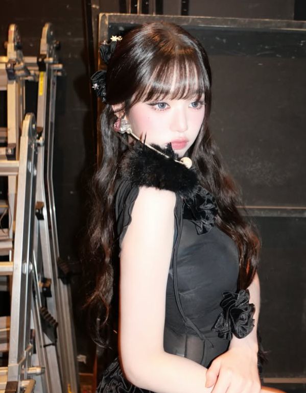 사진 속 장원영은 화려한 블랙 코사쥬가 달린 풍성한 캉캉 스타일의 원피스 코디를 선보였다. 헤어핀 장식까지 검은 리본으로 매치한 가운데 옅은 밤갈색이 잔잔히 감도는 긴 웨이브 헤어스타일로 우아함을 한꺼풀 더했다.