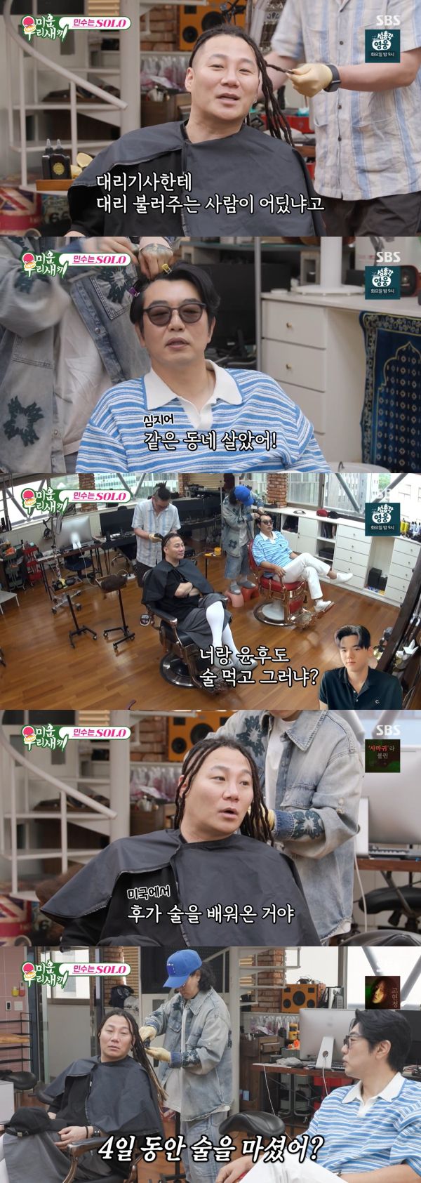 윤민수는 아들 윤후의 근황에 대해서도 "미국 가서 술을 배워왔더라. 나흘 동안 술을 먹여봤는데 음주 DNA가 살아있다"고 밝혔다. 그러면서 탁수와 윤후의 술 대결을 제안해 웃음을 자아냈다.