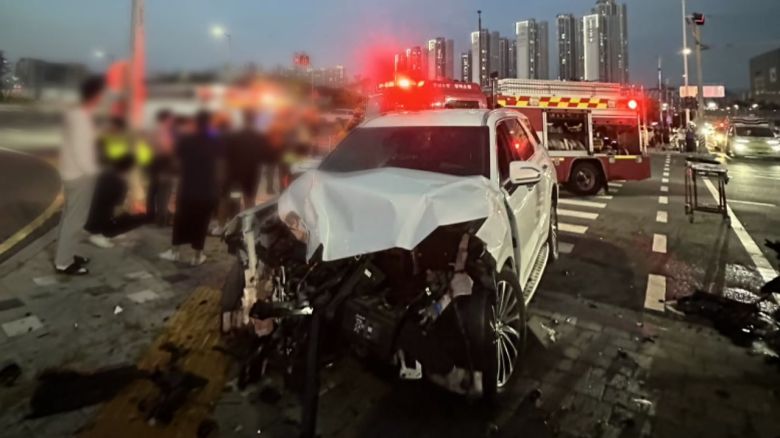어제 오후 6시 50분쯤 충남 천안 불당동의 교차로에서 40대가 몰던 SUV와 차량 두 대가 부딪혔습니다.
