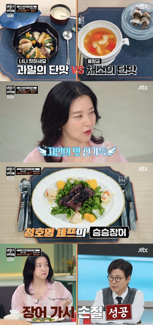 두 번째는 ‘자연주의 요리 먹을래요?’ 주제로 샘킴과 정호영 셰프가 대결을 펼쳤다. 샘킴은 건강식으로 샐러드를 활용했다면, 정호영은 장어와 블루베리 조합으로 승부를 봤다. 그 결과, 정호영이 승리하게 됐다.