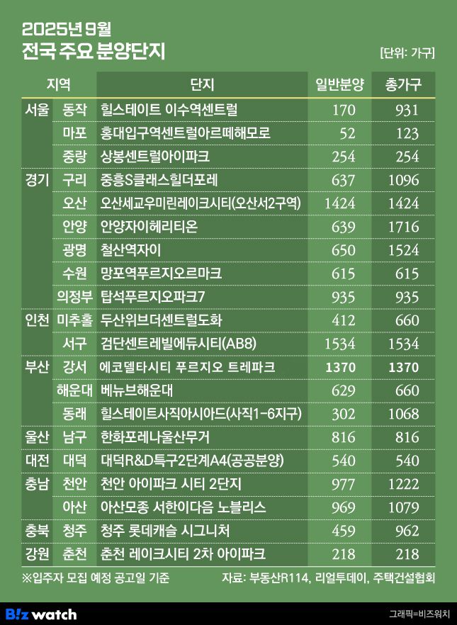 분양 성수기로 꼽히는 9월에 공공과 민간분양 물량을 포함해 2만7000여가구 아파트가 청약을 받을 예정이다. 이달 초에는 이재명 정부의 주택공급 대책 발표도 예고돼 있다.