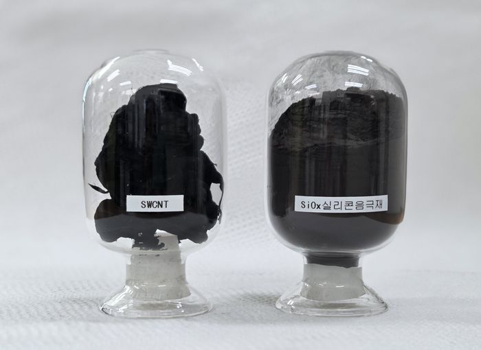 이큐브머티리얼즈가 생상하는 단일벽 탄소나노튜브(SWCNT)와 SiOx 실리콘 음극재 제품 (이큐브머티리얼즈 제공)