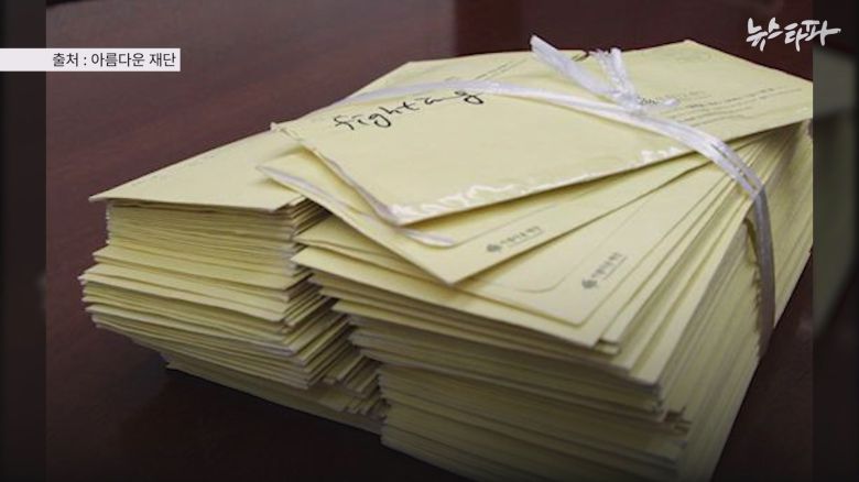 쌍용차 노동자들에 대한 과도한 손해배상 청구에 항의하는 시민들이 전달한 모금 봉투. 이 사건이 ‘노란봉투법’ 이라는 이름의 유래가 되었습니다.