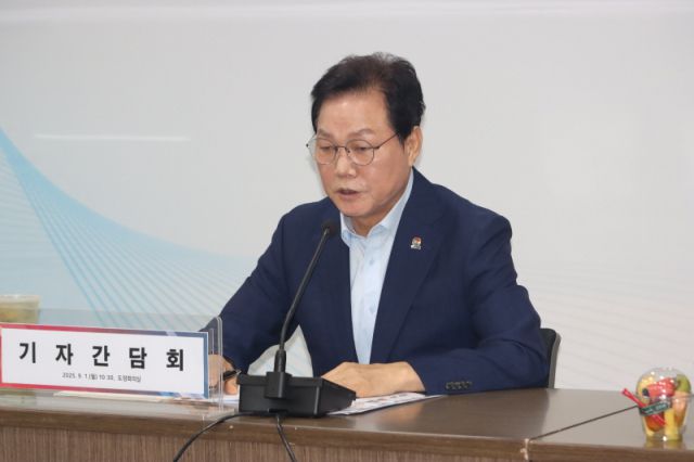 ▲박완수 경남도지사가 경남도청 도정회의실에서 기자간담를 하고 있다. ⓒ프레시안(조민규)