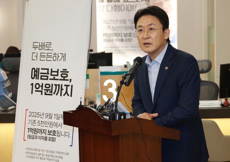 권대영 금융위 부위원장이 예금보호한도가 1억원으로 상향된 1일 서울 중구 하나은행 본점을 방문해 발언하고 있다. 금융위 제공 |