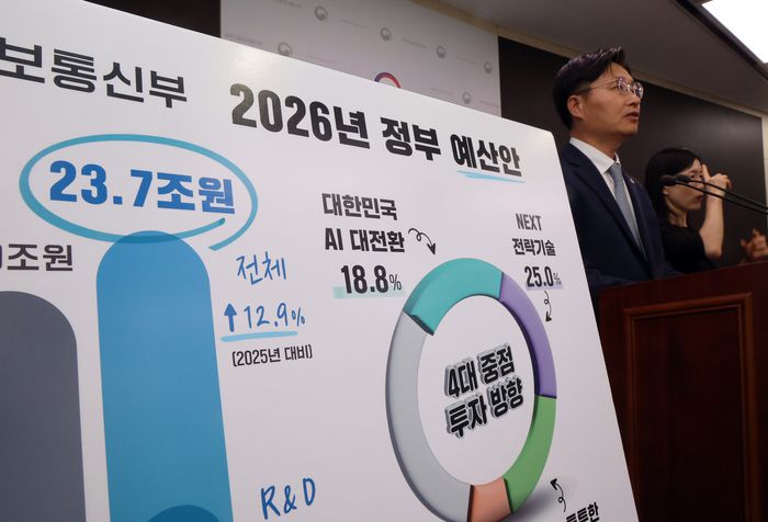 과기정통부는 1일 정부세종청사에서 브리핑을 열고, 2026년도 정부 예산안 및 기금운영계획안에 반영된 과기정통부 예산안이 총 23조7000억원으로 편성됐다고 밝혔다.