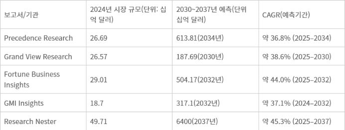 주요 시장분석 기관별 헬스케어 AI 시장 전망 |